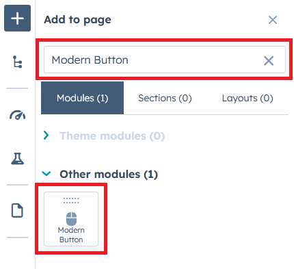 - Now simply pick the "Modern Button" module, drag, and drop it wherever you want on your page. You’ll see a new module appear on the page.