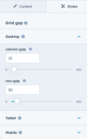 - Grid gap: In this group includes team column grid gap such as "Column gap" and "Row gap" can be easily customized for "Desktop", "Tablet" and "Mobile".